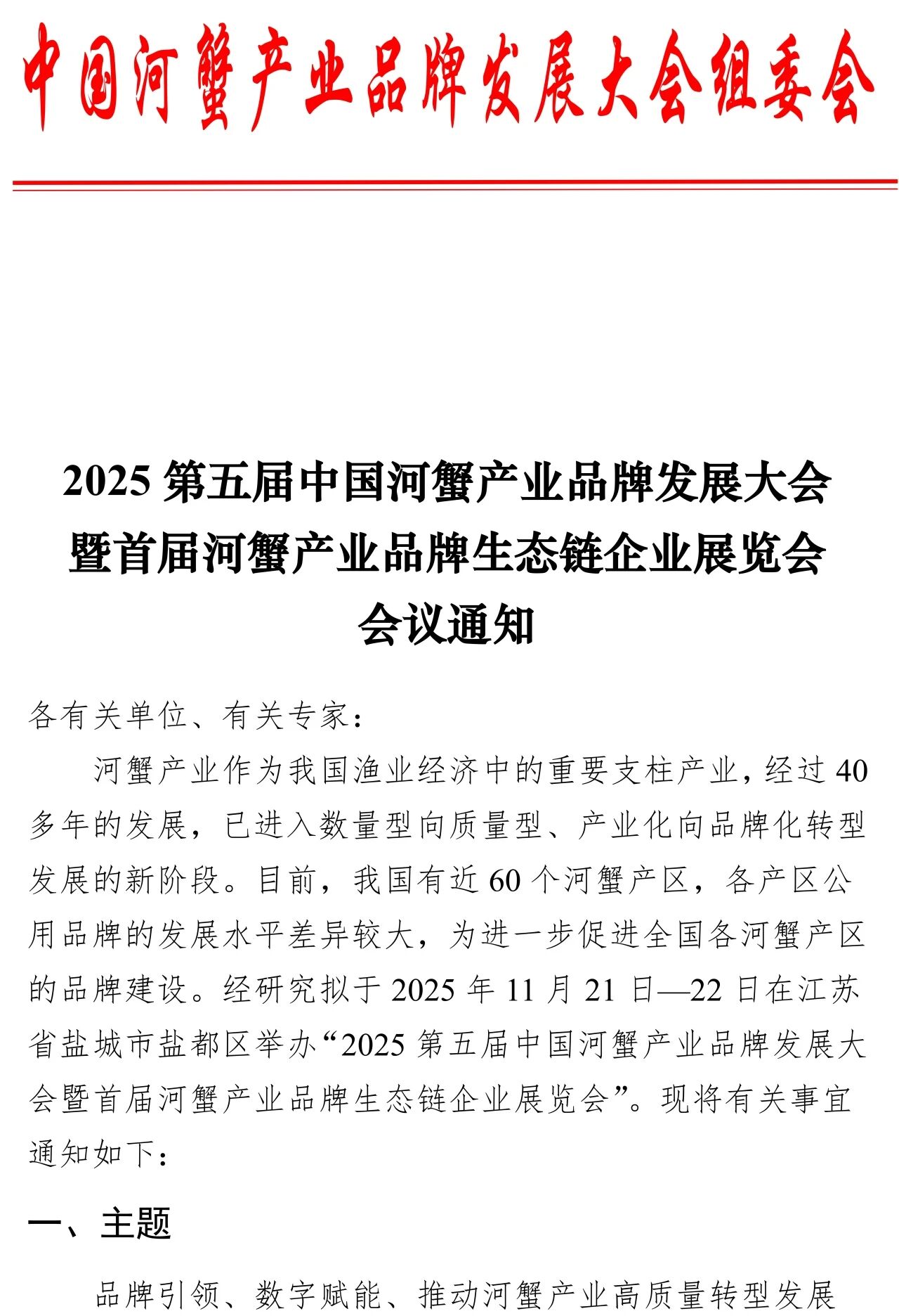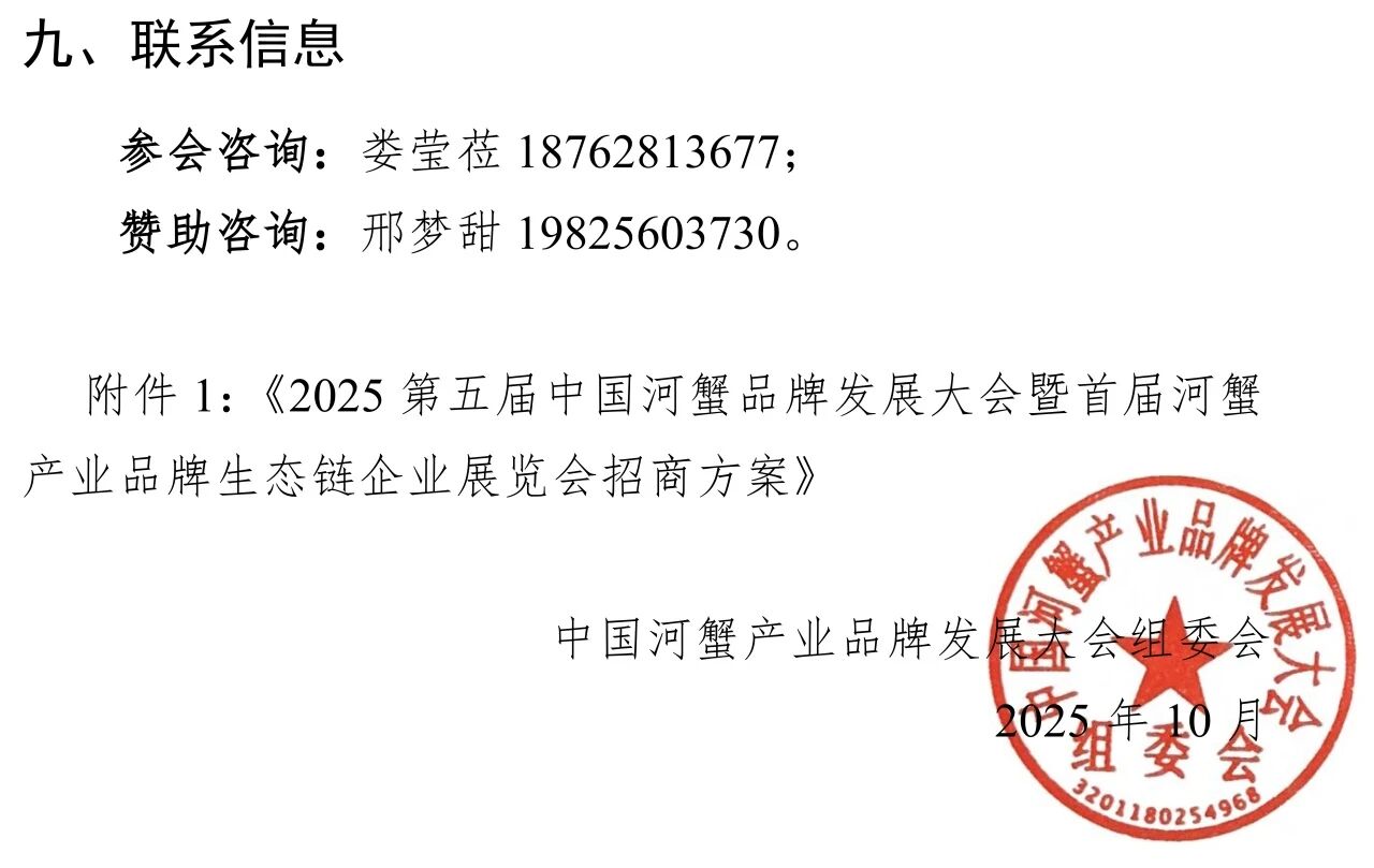 2025 第五届中国河蟹产业品牌发展大会暨首届河蟹产业品牌生态链企业展览会通知